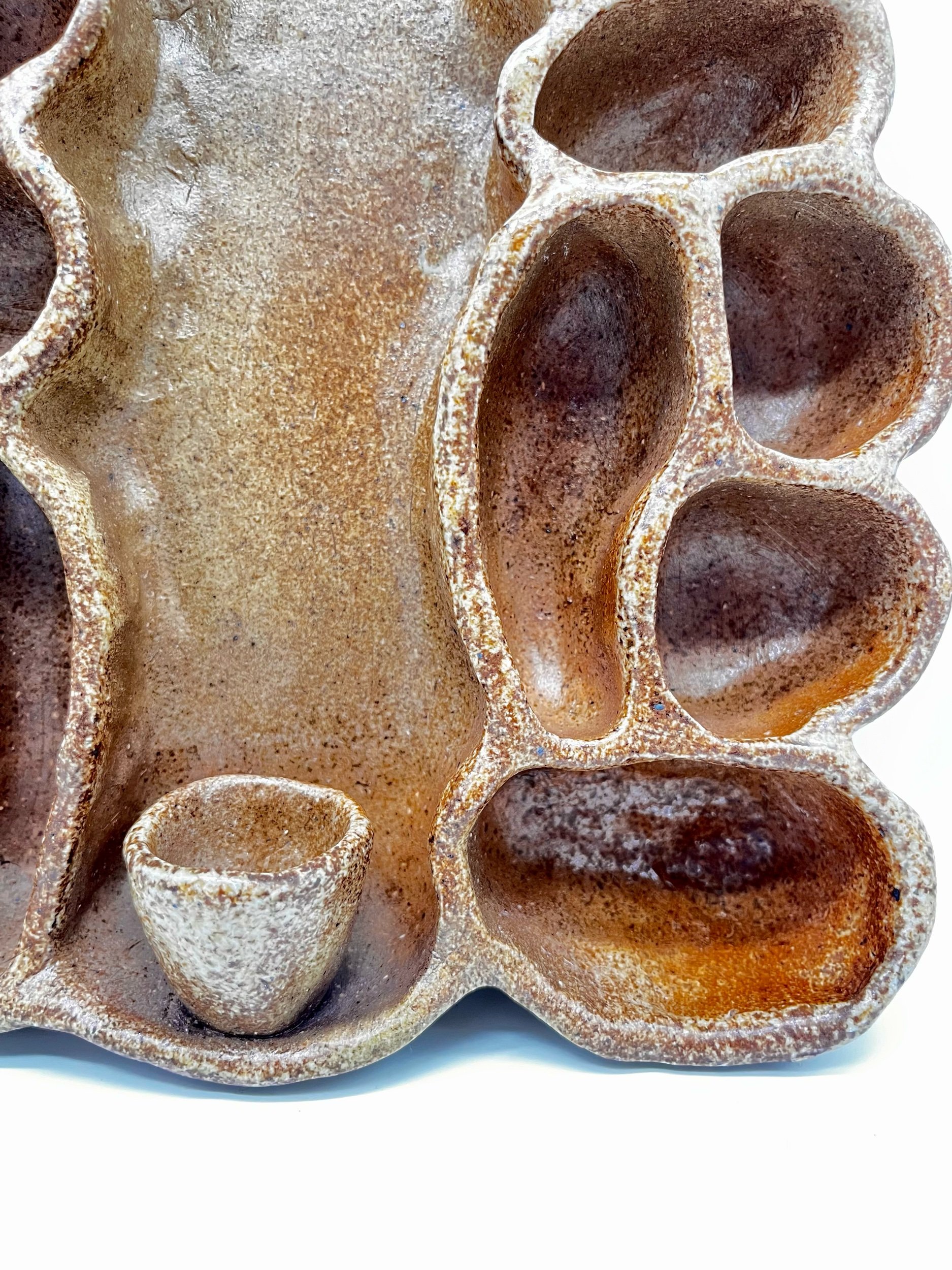 This piece was made from North Carolina clay, and wood-fired in Swannanoa, North Carolina. This slow and laborious firing process, results in unique surfaces and textures.