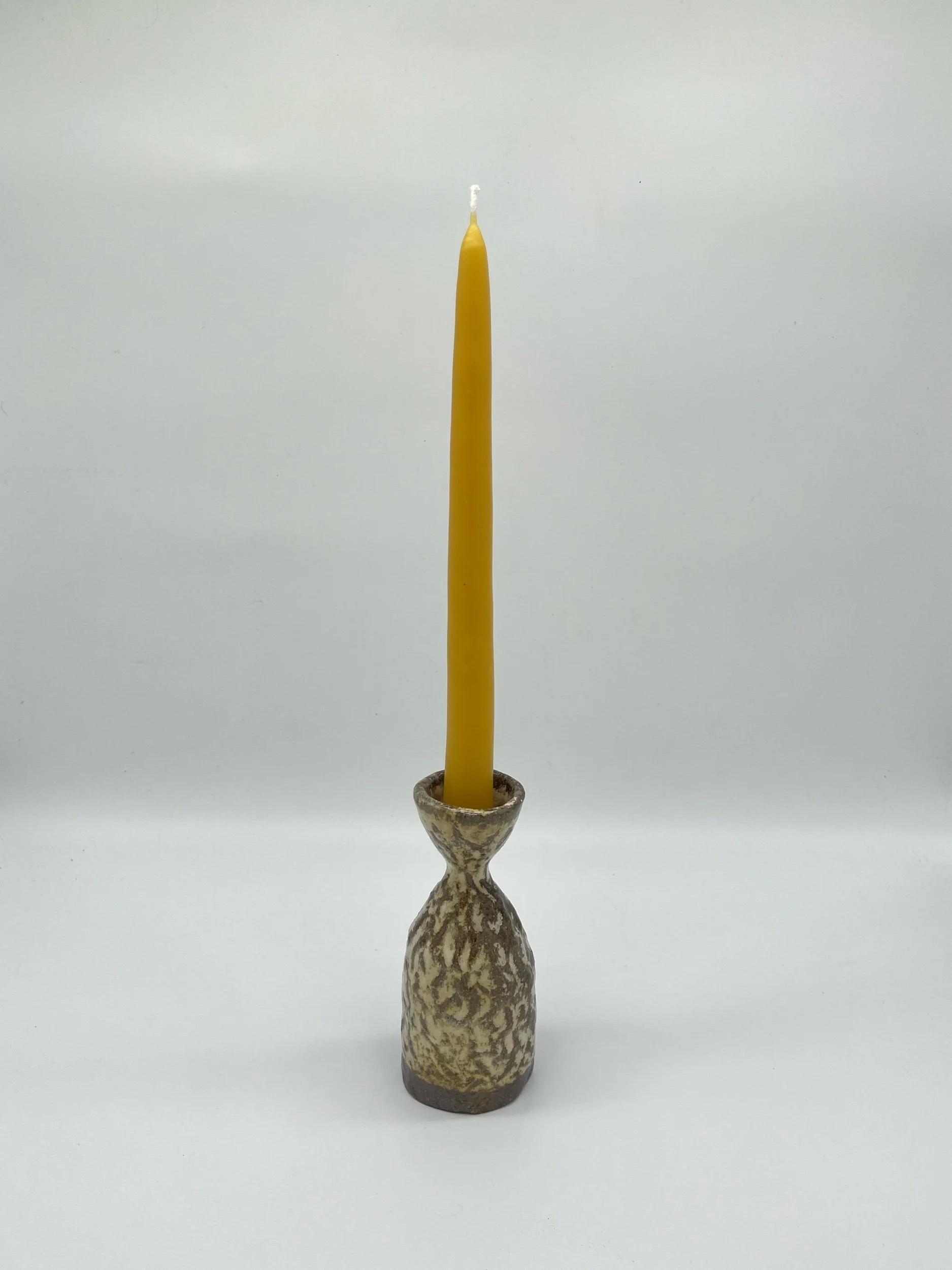 Shop › Candleholder 03 Image 1 of 3 Image 2 of 3 Image 3 of 3 Candleholder 03 $25.00 Wood-fired candleholder made from NC stoneware clay. Fits standard taper candles. Add To Cart Added! Wood-fired candleholder made from NC stoneware clay. Fits standard taper candles.